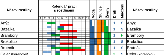 Pripravili sme pre vás ročný kalendár Čo, kedy a kde zasadiť, ktorý si v kurze môžete stiahnuť a vytlačiť. Prehľadne v ňom nájdete, čo a kedy môžete predpestovať, čo môžete vysiať priamo na záhon, koľko rastliny potrebujú zálievky, slnka a živín v pôde, kedy môžete očakávať úrodu, kedy rastlina bude plodiť semená a ako ju rozmnožiť. Môžete sa pozrieť na zoznam rastlín, ktoré v ňom nájdete - ukážka z kalendára.