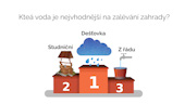 To, čo si na záhrade musíte zaistiť nutne, je kvalitná voda na zálievku. V tejto lekcii si povieme, ako vodu zachytávať v nadzemných nádržiach a jazierkach, aby sa v nej nemnožili komáre a bola vhodná na zálievku. Pozrieme sa na vodu studničnú, z vodovodu a dažďovú a vyberieme ten najlepší zdroj. Ďalej si ukážeme, ako na záhrade vybudovať malé či veľké vodné priekopy (svejly), ktoré udržia vo svahovitých pozemkoch vodu, ktorá by inak stiekla preč.